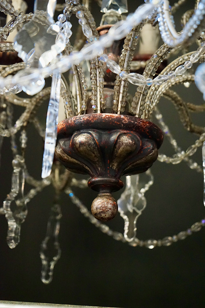 A large, fine quality Italian chandelier with glass drops and beaded glass garlands. Turned wooden fittings with original silver gilding. A particularly elegant example. Rewired to NZ standards.