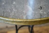 A round wrought iron cafe or bistro table with original marble top and brass edging.