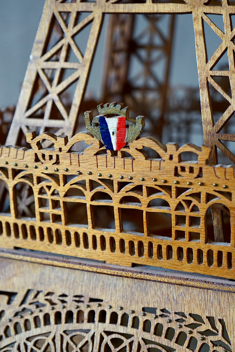 An impressive scale model of the Eiffel Tower, entirely hand-made out of wood. A rare item and highly decorative in any interior.