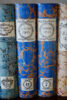 A collection of highly decorative Italian foolscap document boxes in the form of large old antique books. Made of wood and heavy card with colourful hand-marbled spines and fabric ties. Ideal for storing A4 documents, photographs and other small items. Priced and sold separately.